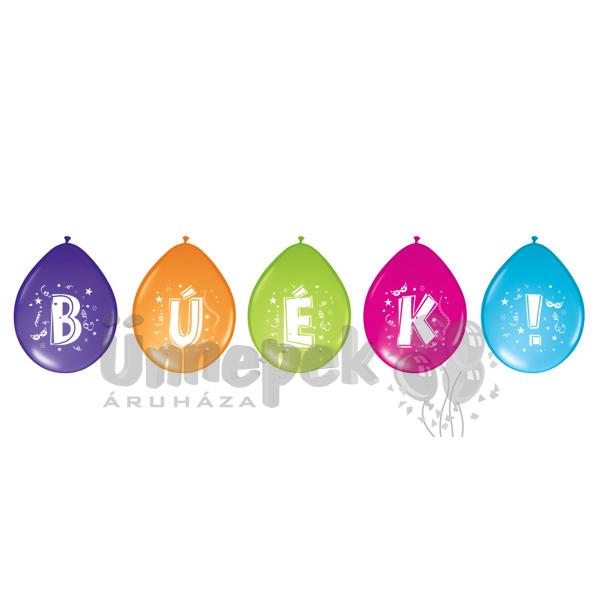 BÚÉK! Színes Lufik Szalaggal, 28 cm, 5 db