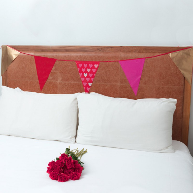 Arany, pink, piros és szívecske mintás zászlófüzér.