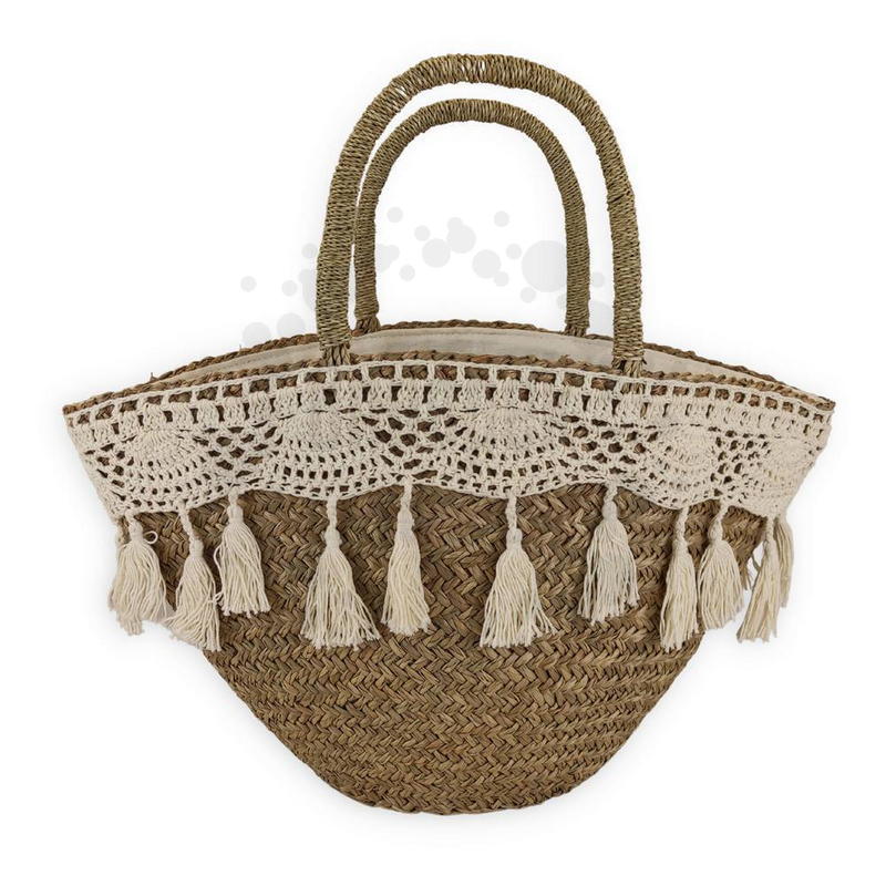 Bengkuang Szőtt Strandtáska Bojt Dísszel - Krém