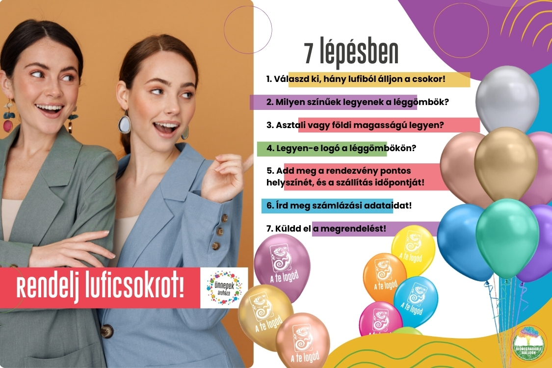 - Legyen-e logó a léggömbökön? Ha igen, csak az egyik, vagy mindkét oldalon?