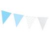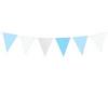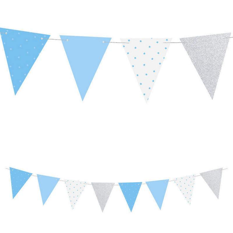 A csomagban a zászlófüzérek a következő színeket tartalmazzák: 2 db csillogó ezüst, 2 db világoskék, 2 db fehér alapon kék színű csillag mintás és 2 db kék alapon kék színű csillag mintás.