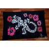 Fekete alapon fehér gekkó és pink hibiszkusz mintás prémium sarong