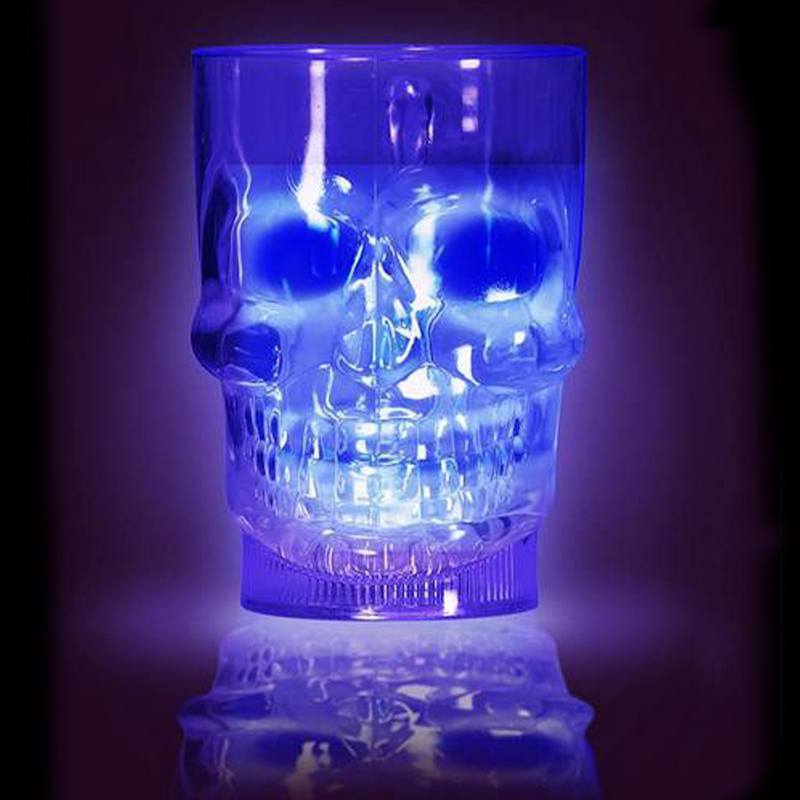Nagyszerű, csodás világító koponyás sörös korsó pohár. A korsó váltakozva: piros, zöld, kék, és fehér színben világít.